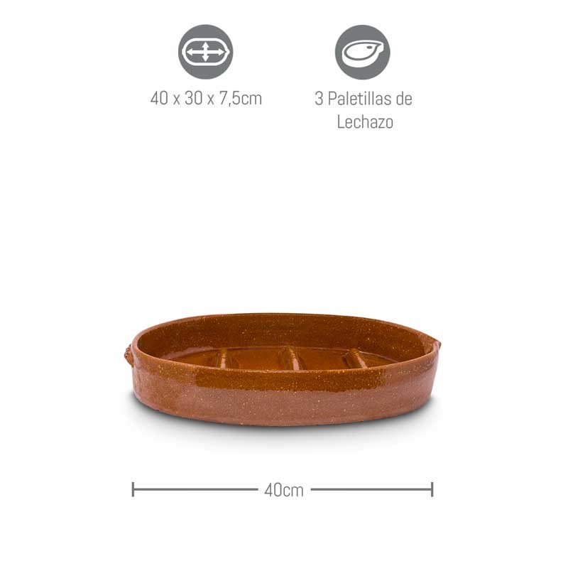 40 x 30 x 7,5 cm. Capacidad 3 paletillas de lechazo