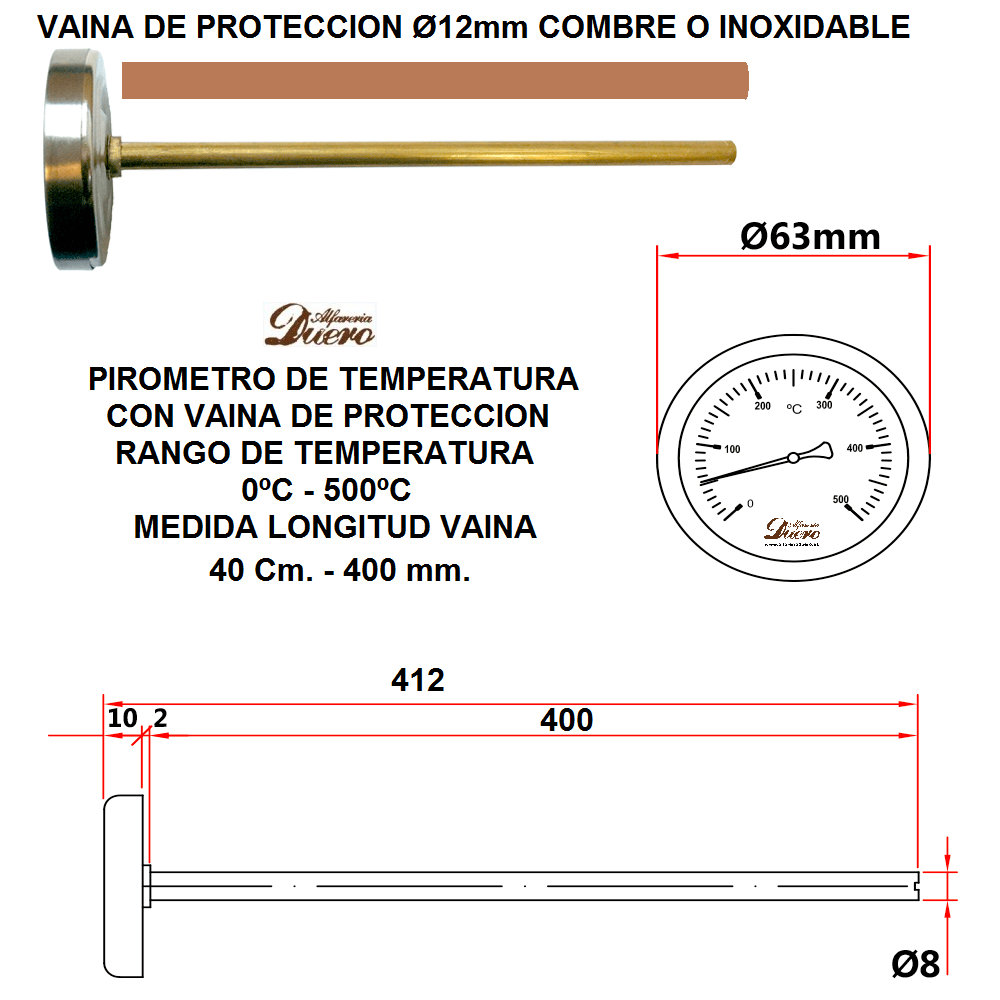 Pirómetro 500º C vaina 400 mm